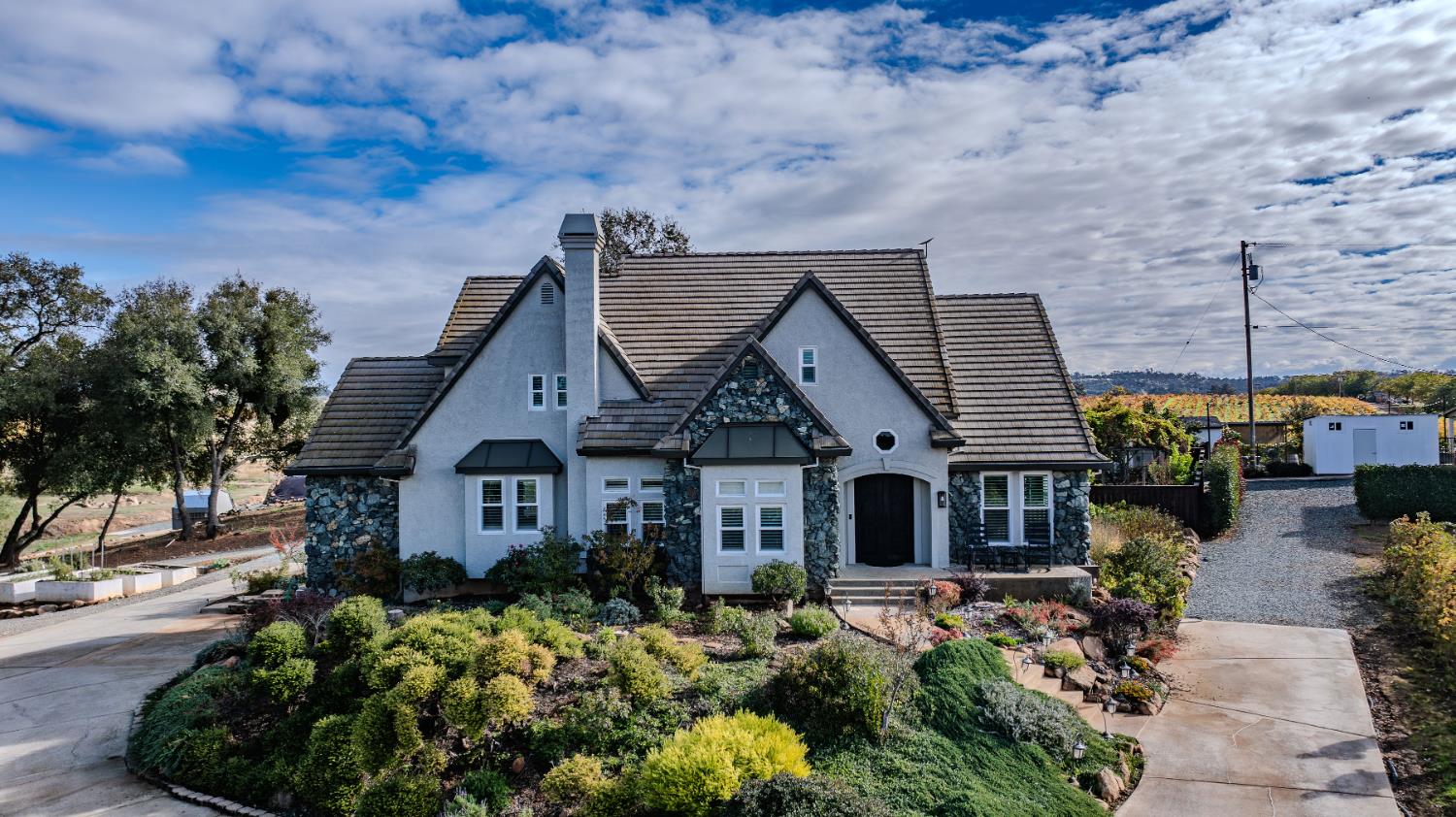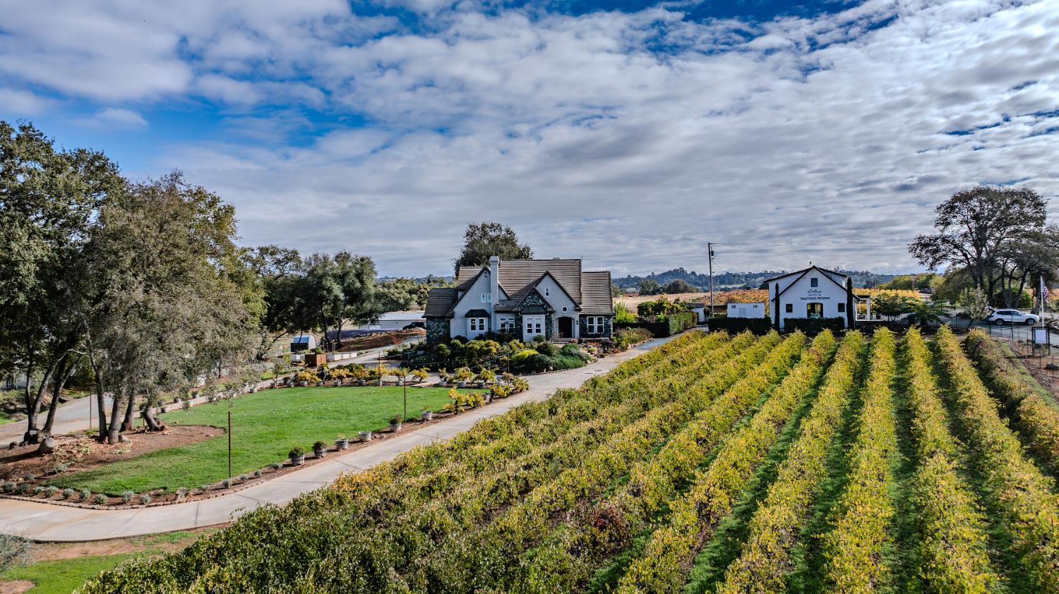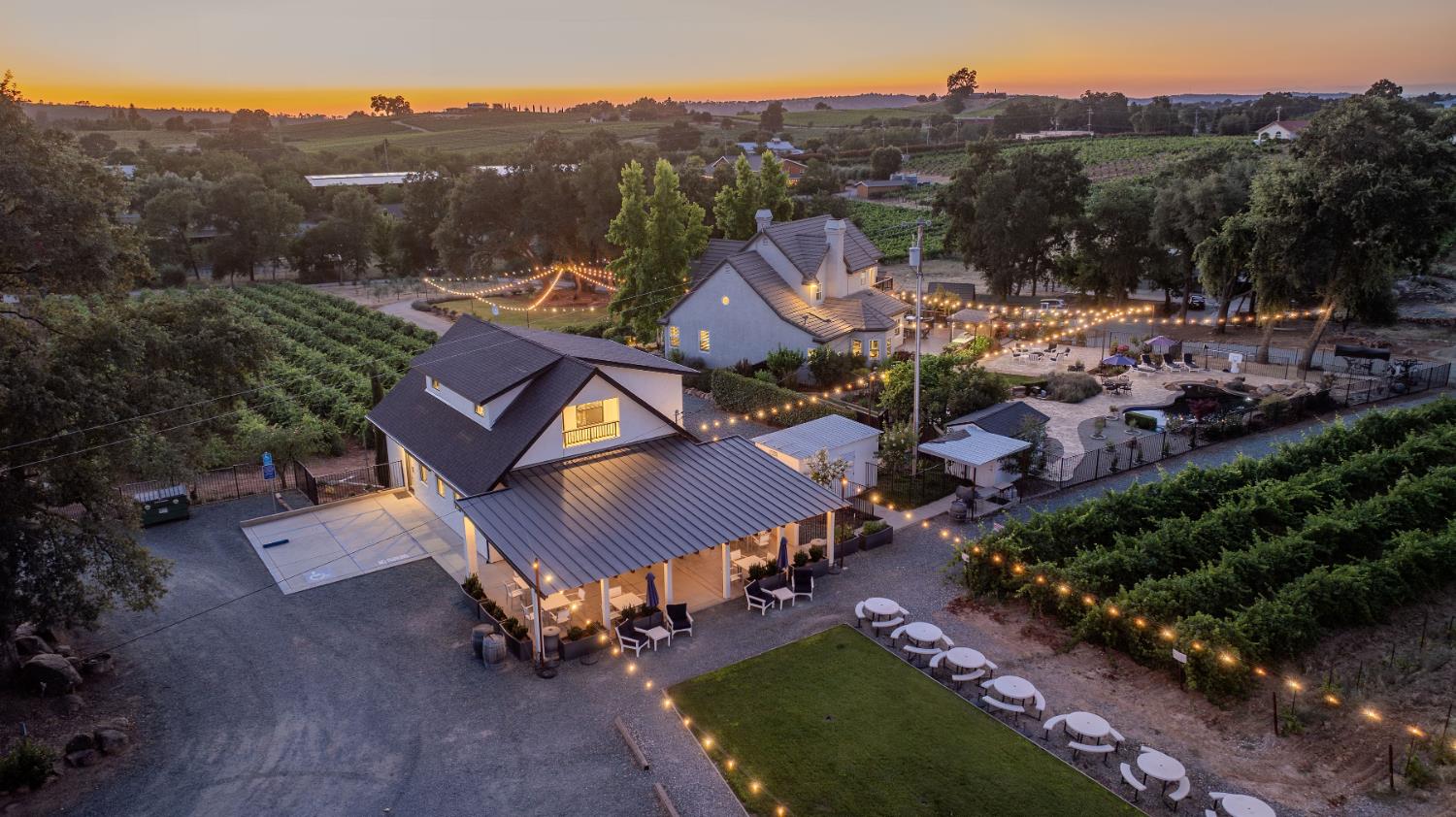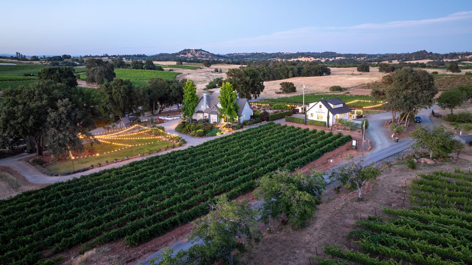 Outstanding 24-acre Storybook Vineyard Estate located in the scenic Shenandoah Wine Valley, just minutes from downtown Plymouth. This beautifully appointed property features manicured vineyards, lush grounds, and a stately home designed for luxurious living and entertaining. The main level includes a grand entry with soaring ceilings, formal dining, office, and spacious primary suite. The remodeled gourmet kitchen offers high-end finishes, a center island, and views of the rolling vineyard hills. Step outside and you'll discover an entertainer's dream backyard, with an expansive patio, built-in BBQ and pizza oven, sparkling pool, and waterfall feature. The detached Di Stasio tasting room is a true gem, with a striking white stone accent wall, abundant natural light, and a picture window that perfectly frames the vineyard beyond. A separate catering-style kitchen nearby makes it effortless to host events and tastings in style. Additional highlights include a wine cave, large outbuildings, a seasonal creek, and potential for wine production, private events, or future expansion. This exceptional estate offers a luxurious foothill lifestyle with income-producing potential, legacy value, and wine country charm. Further amenity and equipment list available upon request.