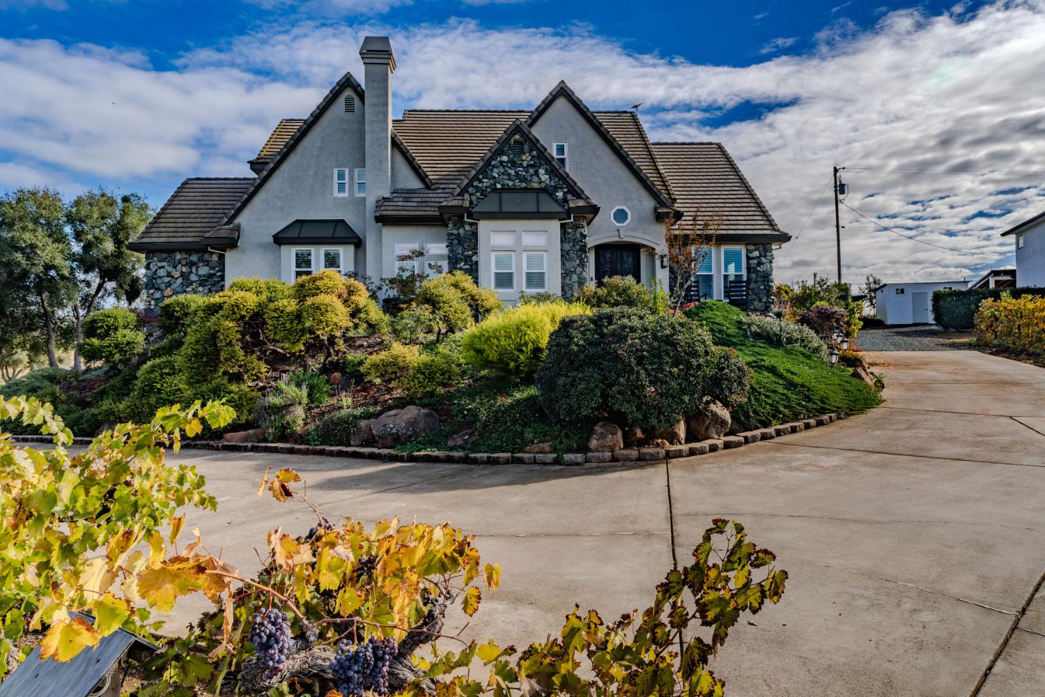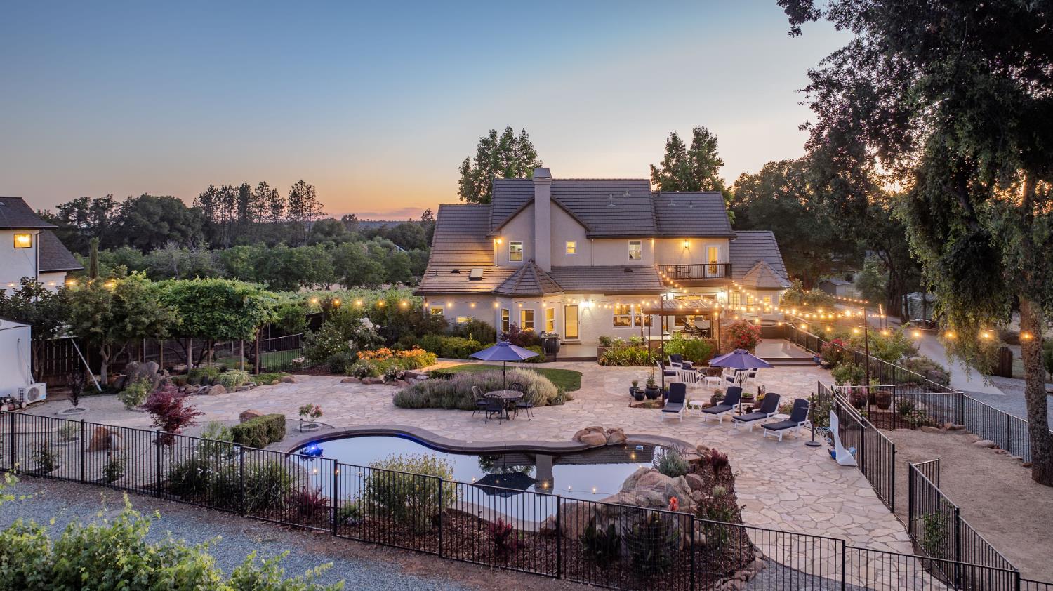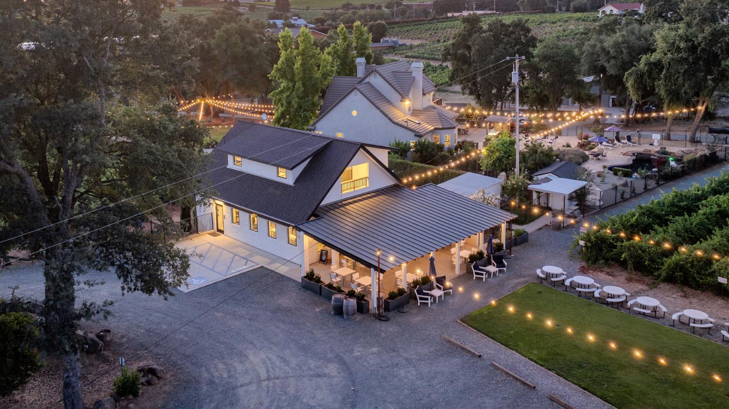 Outstanding 24-acre Storybook Vineyard Estate located in the scenic Shenandoah Wine Valley, just minutes from downtown Plymouth. This beautifully appointed property features manicured vineyards, lush grounds, and a stately home designed for luxurious living and entertaining. The main level includes a grand entry with soaring ceilings, formal dining, office, and spacious primary suite. The remodeled gourmet kitchen offers high-end finishes, a center island, and views of the rolling vineyard hills. Step outside and you'll discover an entertainer's dream backyard, with an expansive patio, built-in BBQ and pizza oven, sparkling pool, and waterfall feature. The detached Di Stasio tasting room is a true gem, with a striking white stone accent wall, abundant natural light, and a picture window that perfectly frames the vineyard beyond. A separate catering-style kitchen nearby makes it effortless to host events and tastings in style. Additional highlights include a wine cave, large outbuildings, a seasonal creek, and potential for wine production, private events, or future expansion. This exceptional estate offers a luxurious foothill lifestyle with income-producing potential, legacy value, and wine country charm. Further amenity and equipment list available upon request.