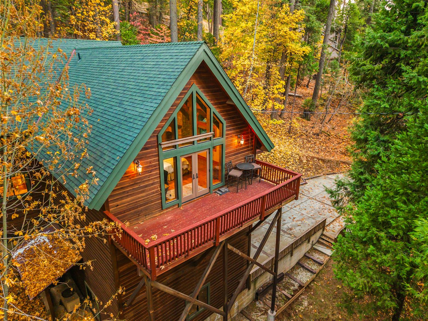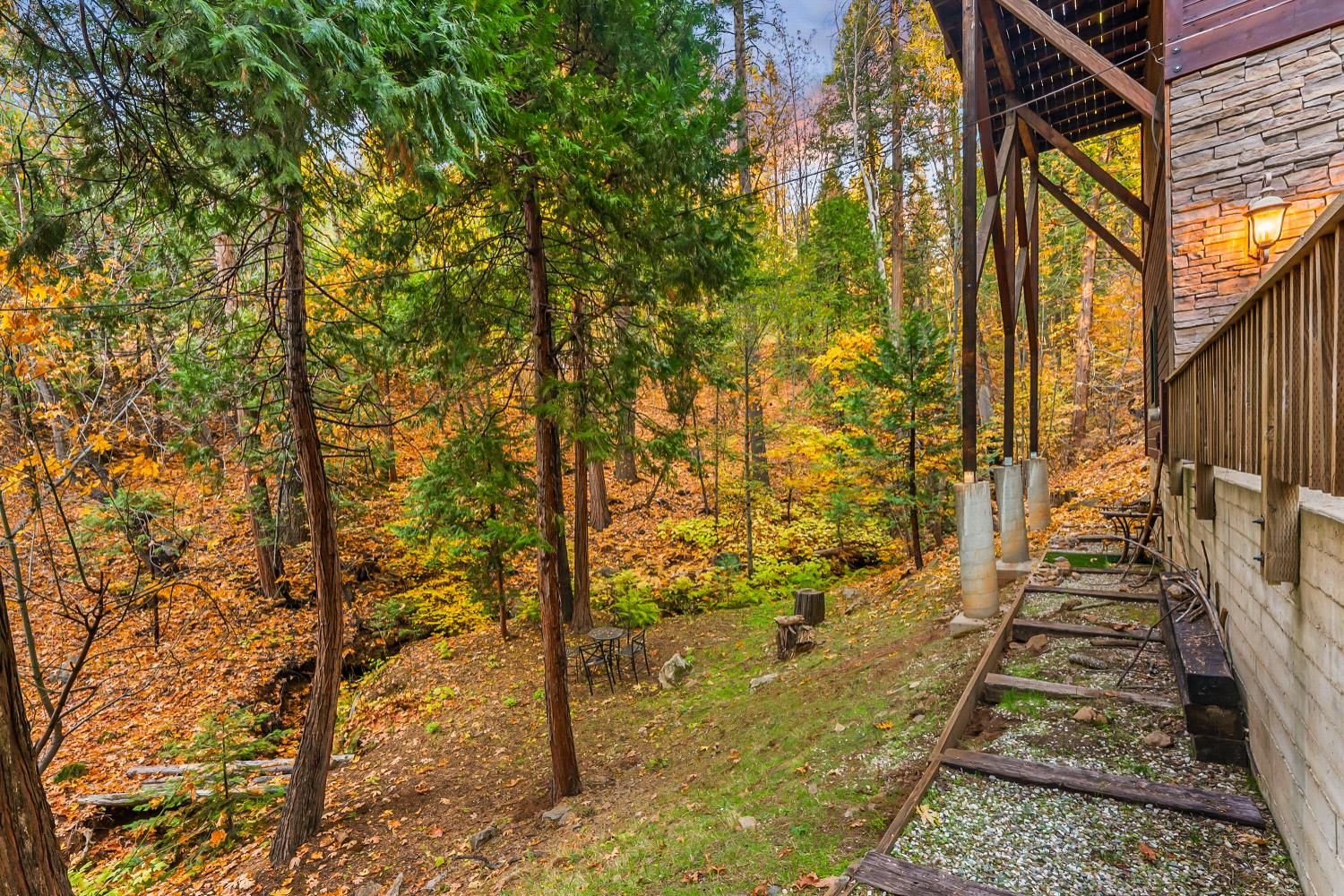 Creekside Luxury Mountain Cabin Turn-Key Vacation Rental on 3 Acres. Tucked among towering pines and dogwood trees, and set along a peaceful, year-round creek, this exceptional Arnold mountain cabin offers a rare blend of rustic charm, modern luxury, privacy, and proven income potential. Designed for both relaxation and entertaining, the property features inviting outdoor living spaces and expansive decks that allow you to fully immerse yourself in the serene forest setting. Offered as a turn-key vacation rental, the home is being sold fully furnished, allowing for immediate enjoyment or continued rental use. The interior is anchored by a beautifully remodeled, chef-inspired kitchen designed for both style and functionality. Highlights include quartz countertops, a pot filler, double drawer dishwasher, built-in refrigerator, and premium appliances ideal for hosting gatherings or accommodating larger groups. A nearby wet bar with wine refrigerator adds convenience and sophistication for entertaining. The living room is warm and inviting, centered around a dramatic floor-to-ceiling stone fireplace that serves as the focal point of the space. Soaring ceilings, large windows, and direct access to a spacious deck with a built-in fire pit create a seamless indoor-outdoor connection perfect for evenings under the stars, entertaining guests, or simply enjoying the peaceful surroundings. The primary suite is a true retreat, featuring its own fireplace, private deck with treetop views, and a spa-like en suite bath with a standalone soaking tub positioned beneath a picturesque window, a separate shower, and a walk-in closet. Open the French doors and fall asleep to the soothing sound of the creek flowing below. A quaint loft-style media and game area provides the perfect space for movie nights and recreation, conveniently located near two guest bedrooms and a beautifully appointed guest bath with distinctive geometric tilework that adds character. Set on two legal parcels totaling approximately 3 acres, the property also includes approved plans for a 2-bedroom, 1-bath addition, offering flexibility for future expansion. Located near boating, swimming, skiing, hiking, and historic Gold Country, this home has a proven history as a successful Airbnb, making it ideal as a full-time residence, second home, or income-producing vacation retreat with proven history. What an exceptional opportunity!