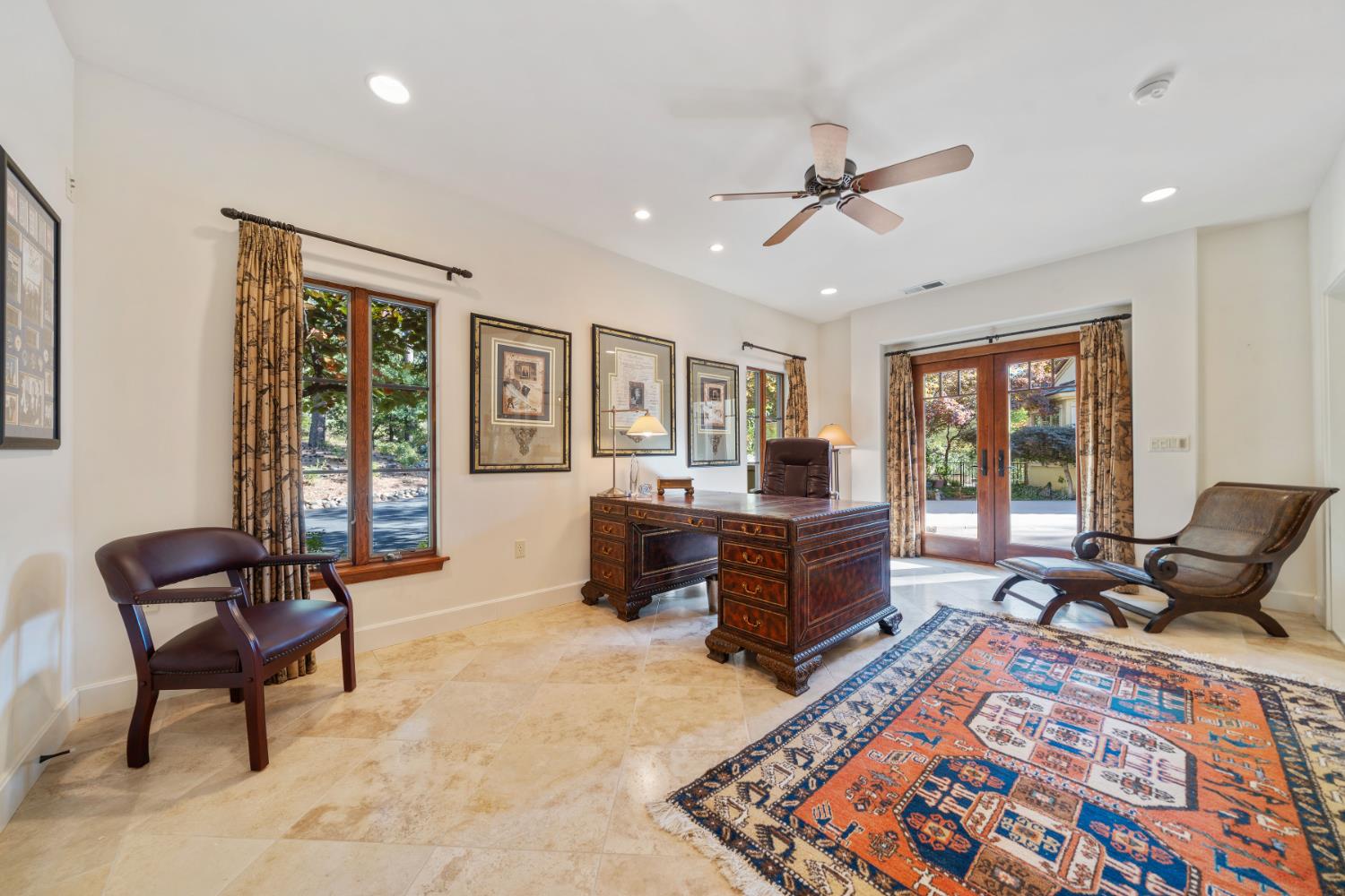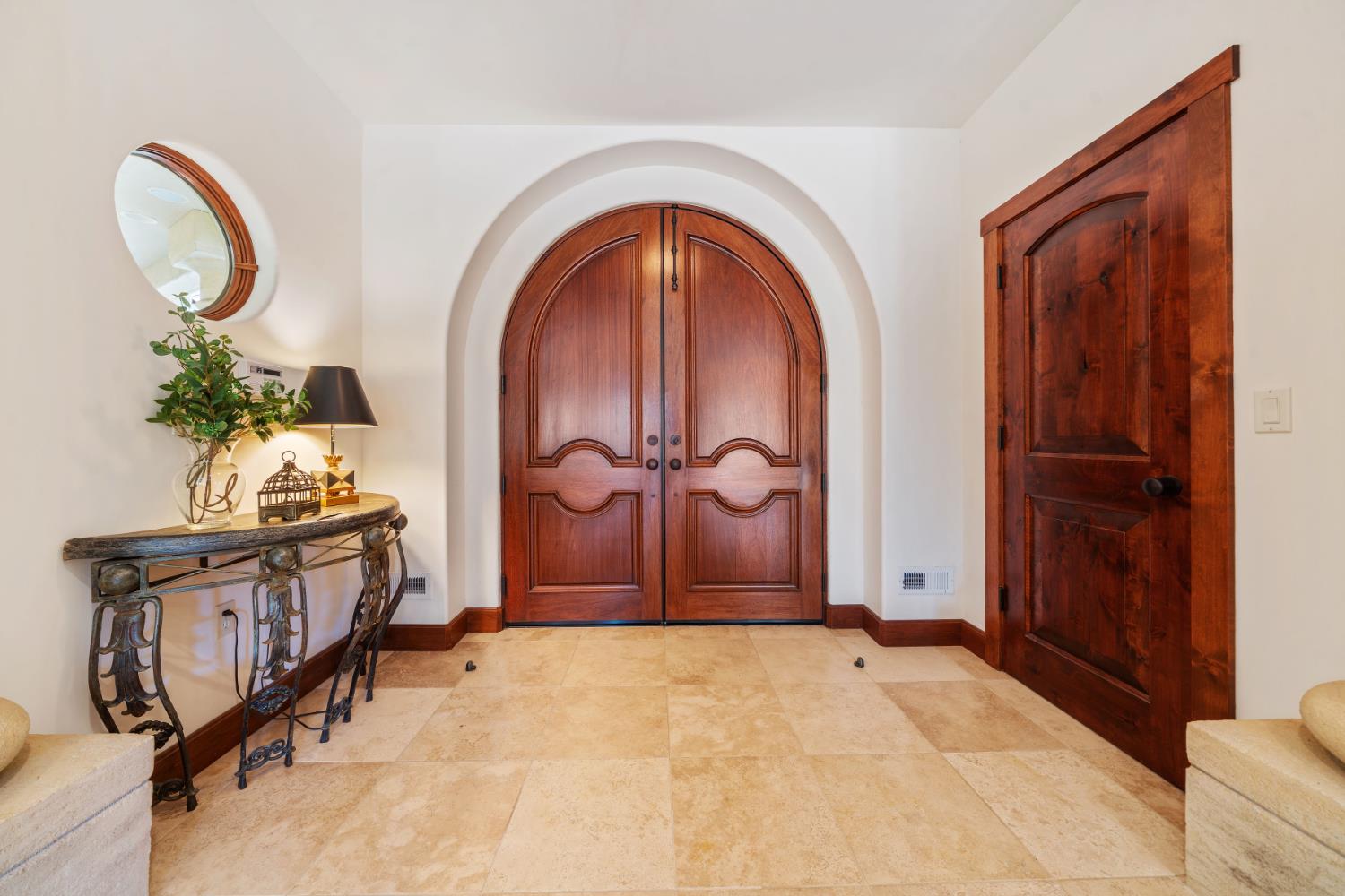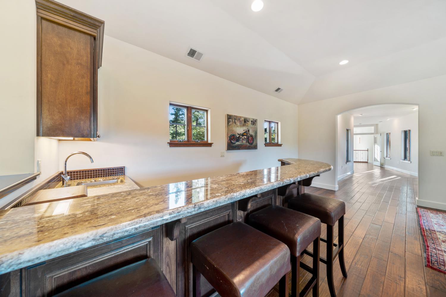 Mediterranean Mountain Estate on 40+ acres just minutes from Murphys and Arnold where wine country charm meets Sierra Mountain living. A private gated drive leads to a courtyard with a fountain and imported wood doors that set the tone for timeless design and quality. Enjoy all four seasons surrounded by soaring pines and oak trees, bordering hundreds of acres of national forest for lasting privacy. The grand yet inviting home captures filtered light from sunrise to sunset, creating a serene treehouse feel. A massive stone fireplace anchors the great room, seamlessly connecting to the gourmet kitchen and wet bar perfect for entertaining. Two luxurious primary suites feature walk-in closets, sitting nooks, and spa-inspired baths, with the main suite offering a jetted soaking tub overlooking the trees and stars. Upstairs, a window-lined hall leads to a game room, bar, and private terrace. A flexible office suite offers space for guests or hobbies. Outdoors, manicured grounds blend nature and refinement patios, a pool, spa, bocce ball, and horseshoes invite relaxation. There's even room for horses, livestock, or private trails. Experience the perfect blend of luxury and nature a serene mountain retreat where privacy, beauty, and timeless design come together.