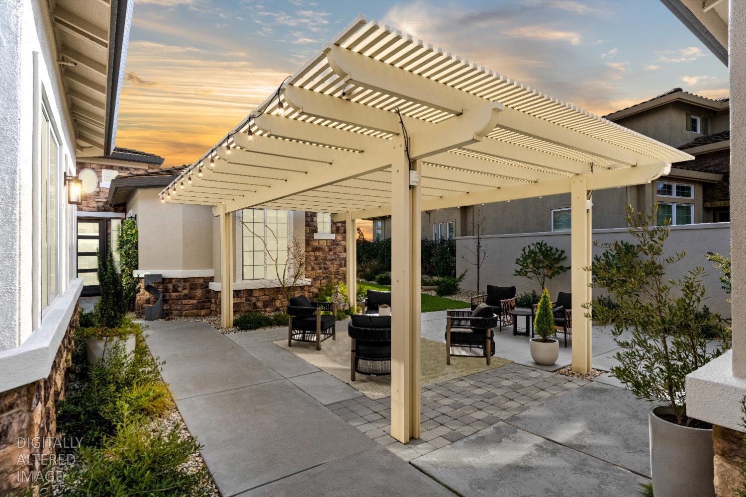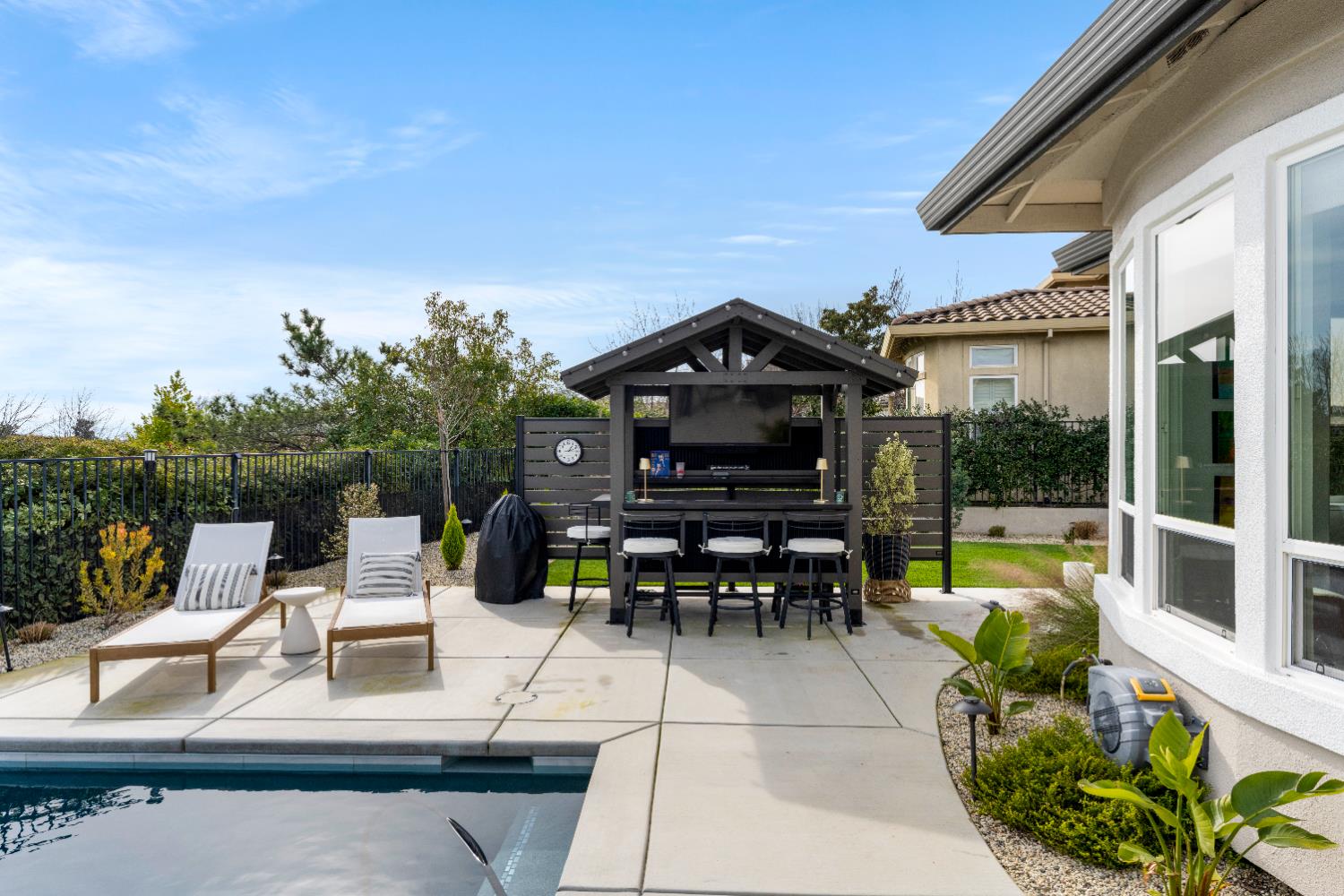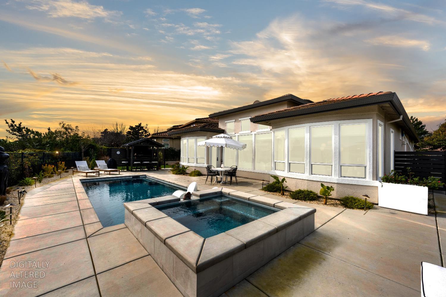 ABSOLUTELY STUNNING single-level home located in the prestigious SERRANO MASTER PLANNED COMMUNITY Situated in the only gated VILLAGE where residents can drive a golf cart directly to clubhouse. This home delivers both LUXURY and LIFESTYLE. A private, oversized yard sets the tone for entertaining. Enter the charming, gated courtyard that separates the main home from the casita and flows to a spacious side yard. Inside the home stuns with designer finishes throughout with a modern vibe complemented with updated chic stylish baths. The living and dining rooms have many windows to enjoy views of the resort back yard with a new built-in pool, spa and bar making it ideal for entertaining. The cheerful butler's pantry, upscale kitchen and breakfast nook overlook the family room and creates a great room concept. The secondary bedrooms, bath, laundry room wing and access to garage extend down the hallway from the great room. A beautiful powder bath is off the main entry. The private primary suite has outside access, 2 walk-in closets and a gorgeous bath with soaking tub, shower, and dual vanities with back-lit mirrors. The detached inviting casita has designer touches too including a beautiful bath. This home offers indoor-outdoor living at its best! Seller is an interior decorator, and it shows! Solar, back up battery, split system in casita and water heaters are just some of the few updates. Main home is approx. 2544SF, 3 BR, 2.5 BA and casita is approx. 247SF with full bath LOVE WHERE YOU LIVE!