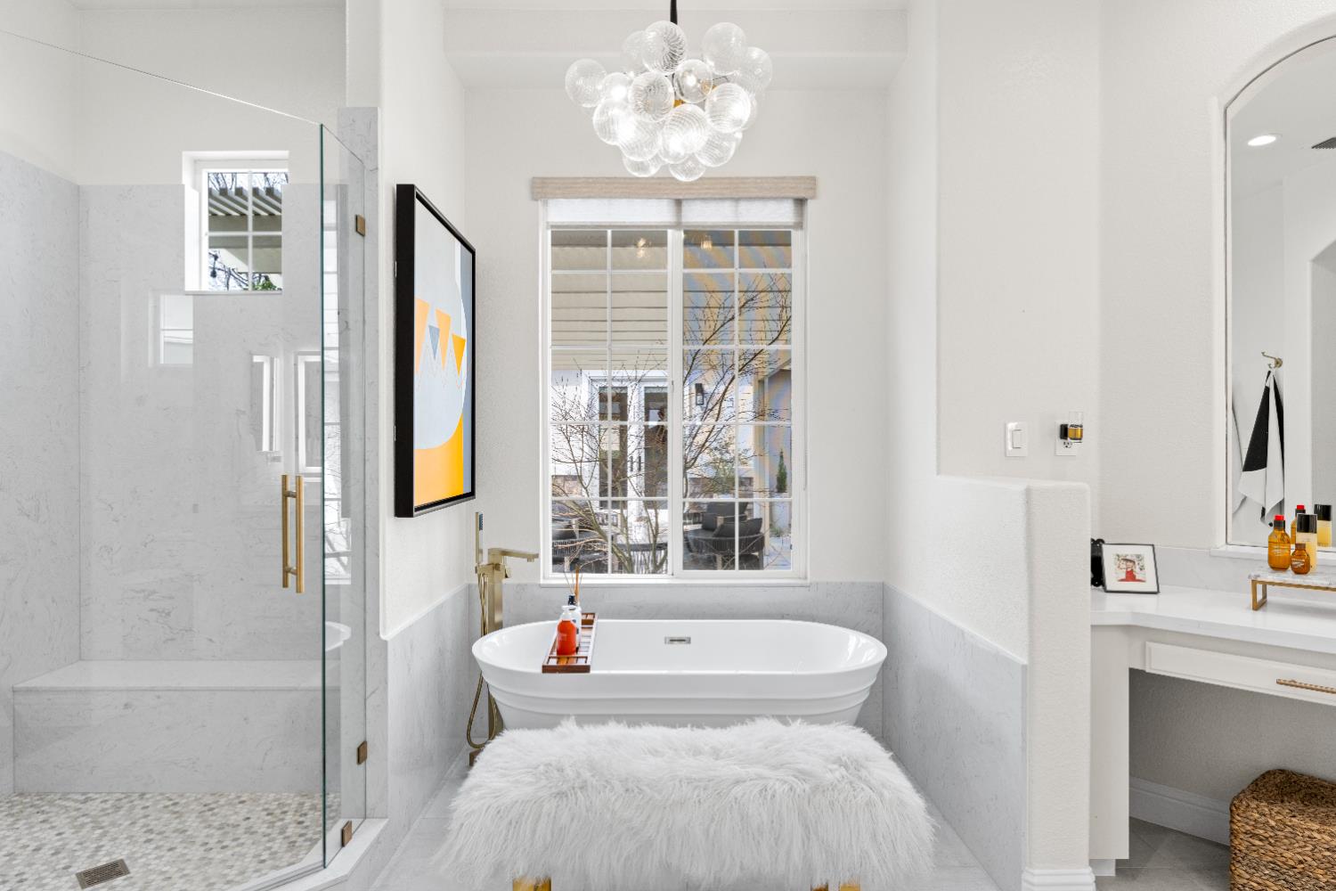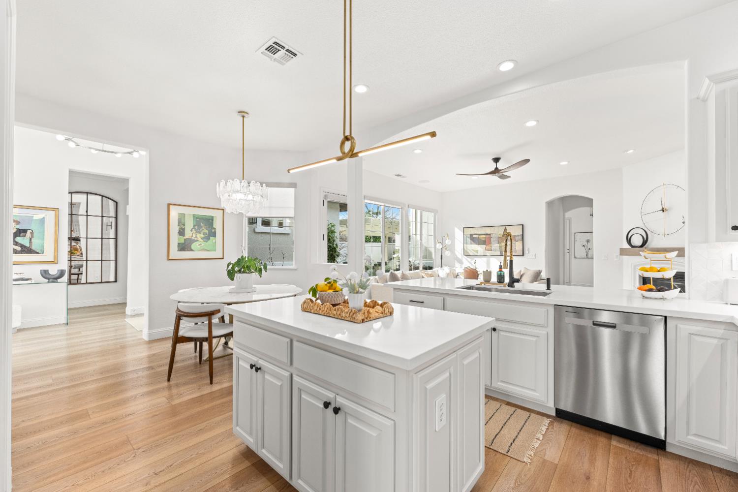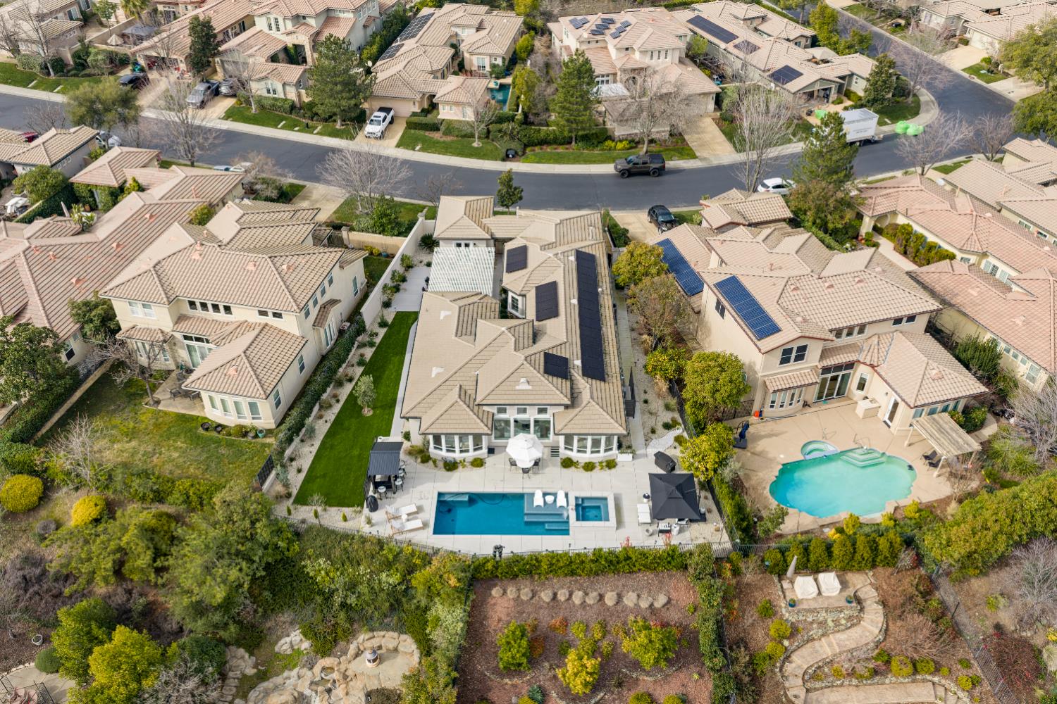 ABSOLUTELY STUNNING single-level home located in the prestigious SERRANO MASTER PLANNED COMMUNITY Situated in the only gated VILLAGE where residents can drive a golf cart directly to clubhouse. This home delivers both LUXURY and LIFESTYLE. A private, oversized yard sets the tone for entertaining. Enter the charming, gated courtyard that separates the main home from the casita and flows to a spacious side yard. Inside the home stuns with designer finishes throughout with a modern vibe complemented with updated chic stylish baths. The living and dining rooms have many windows to enjoy views of the resort back yard with a new built-in pool, spa and bar making it ideal for entertaining. The cheerful butler's pantry, upscale kitchen and breakfast nook overlook the family room and creates a great room concept. The secondary bedrooms, bath, laundry room wing and access to garage extend down the hallway from the great room. A beautiful powder bath is off the main entry. The private primary suite has outside access, 2 walk-in closets and a gorgeous bath with soaking tub, shower, and dual vanities with back-lit mirrors. The detached inviting casita has designer touches too including a beautiful bath. This home offers indoor-outdoor living at its best! Seller is an interior decorator, and it shows! Solar, back up battery, split system in casita and water heaters are just some of the few updates. Main home is approx. 2544SF, 3 BR, 2.5 BA and casita is approx. 247SF with full bath LOVE WHERE YOU LIVE!