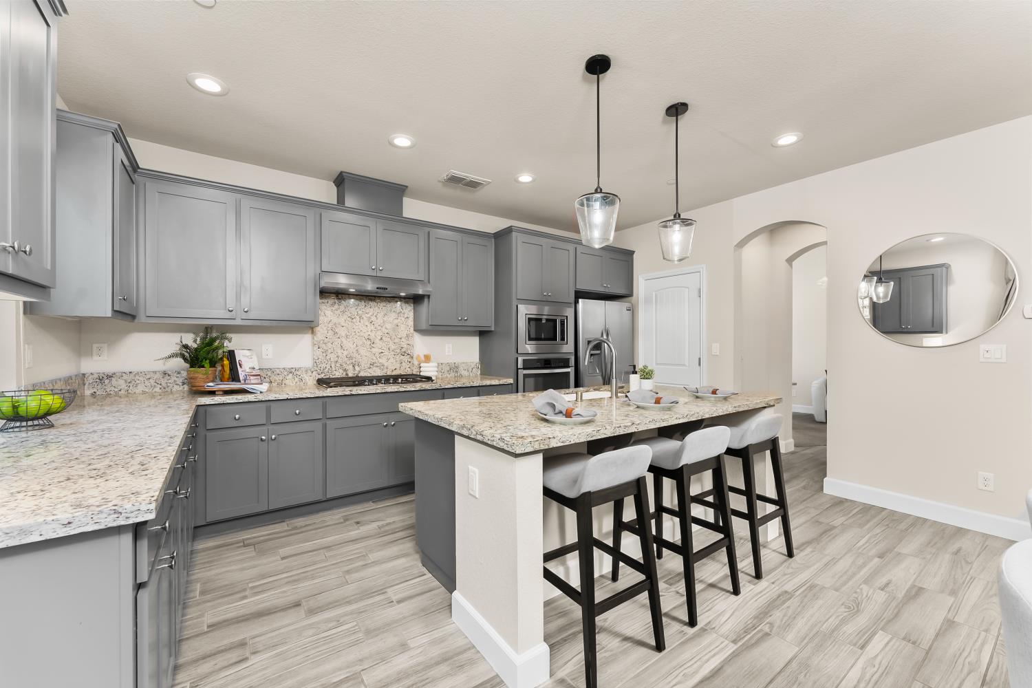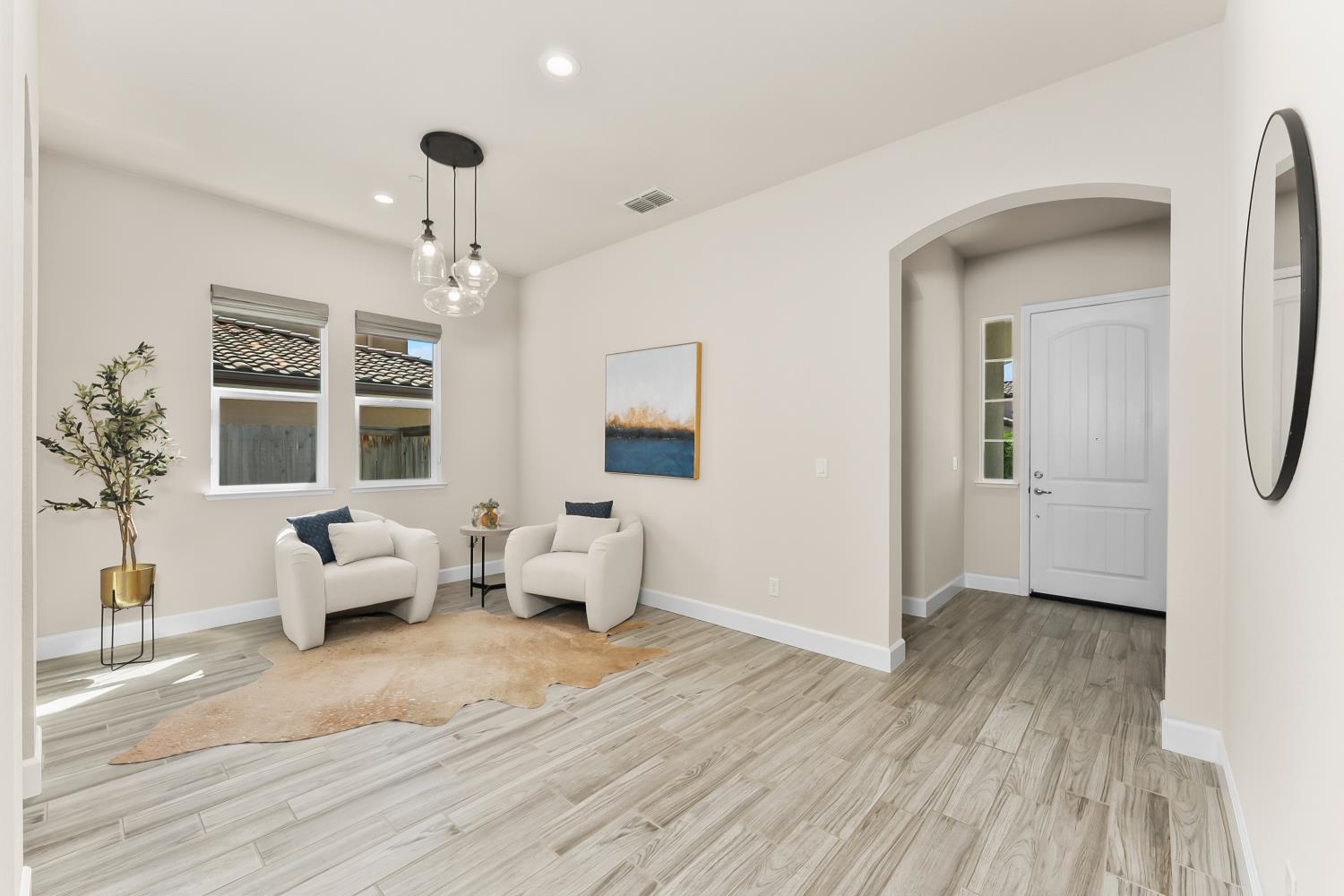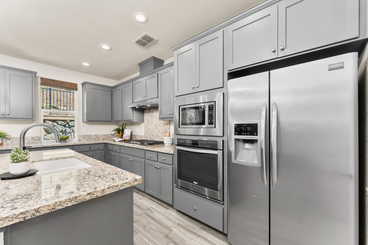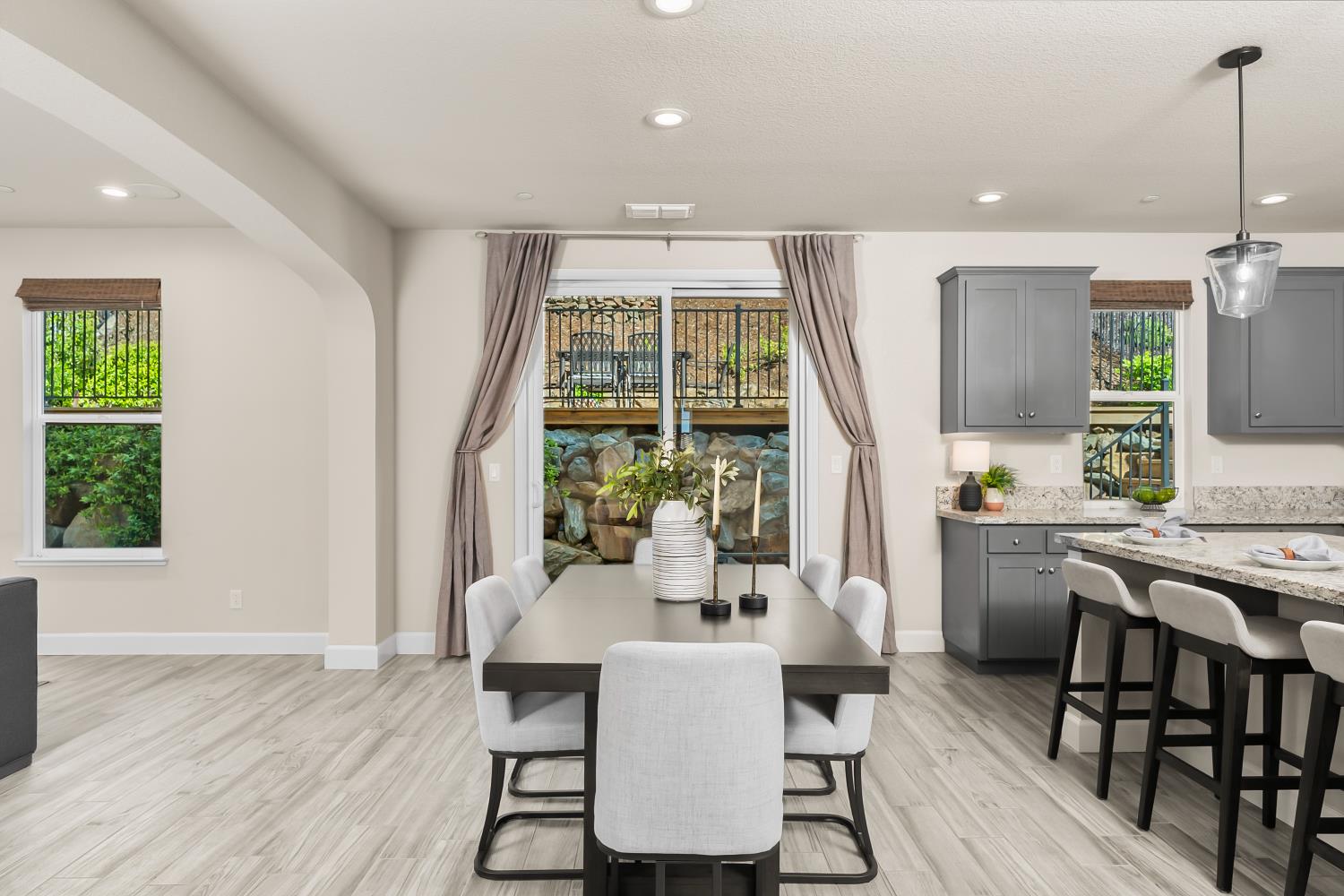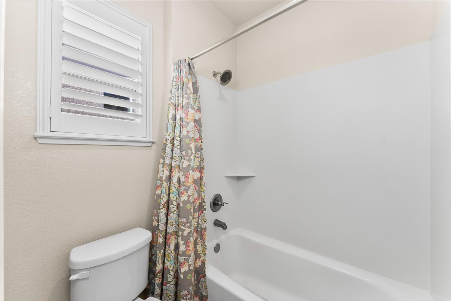 Located in El Dorado Hills within a private gated community home, this thoughtfully designed home offers the perfect blend of comfort, style, and conveniencejust minutes from Town Center and Folsom. The main level features a bright, open-concept layout that seamlessly connects the kitchen, dining, and living spacesideal for both everyday living and entertaining. A formal dining room adds an elegant touch and includes a convenient pass-through bar to the kitchen, enhancing flow for hosting. A bedroom on the main level provides flexibility for guests, a home office, or multigenerational living. Upstairs, you'll find fresh carpet throughout, along with two guest bedrooms and a spacious primary suite. The primary retreat offers generous proportions and a well-appointed en-suite bathroom featuring dual vanities, a centrally positioned soaking tub, and a large walk-in closet. Plantation shutters throughout all bedrooms add both style and privacy. Outside, a stamped concrete patio wraps around the home with convenient side yard access. An additional area of artificial turf maximizes usable space, while the thoughtfully terraced backyard is designed for both functionality and enjoyment. Multiple outdoor living areas culminate in a beautiful upper deck perfect for relaxing and entertaining. Additional highlights include owned solar, ample storage, and extra space for parking. This home offers an exceptional lifestyle opportunity in a prime El Dorado Hills location.